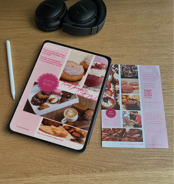Jij besteed al je passie aan het verkopen van jouw product of dienst. Ik help je door jou erbij te betrekken met visuele vormgeving op maat.